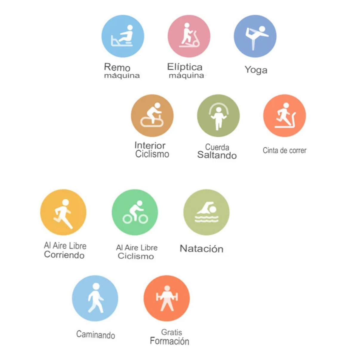 Cuenta con podómetro integrado, que mide la cantidad de pasos realizados, la distancia recorrida y las calorías quemadas. Además, incluye un monitor de signos vitales que registra indicadores clave como ritmo cardíaco y presión, ayudando a mantener un control constante durante el entrenamiento o en la rutina diaria.